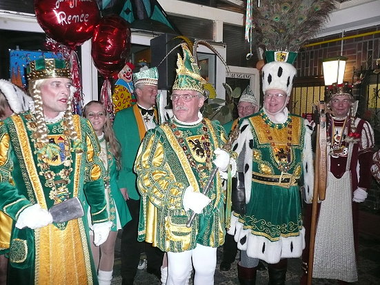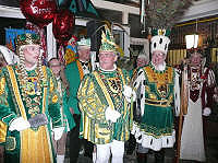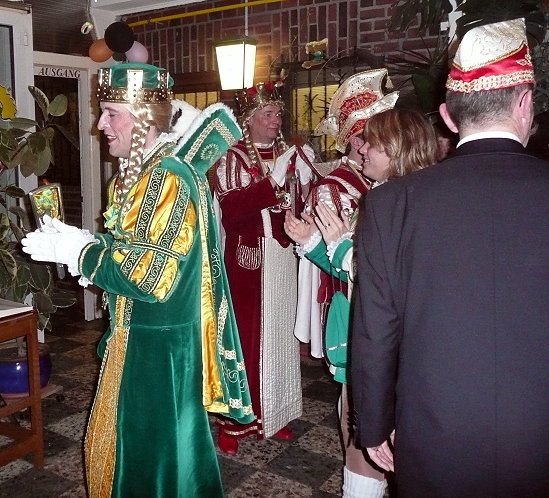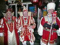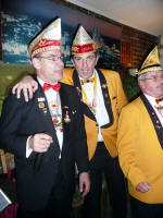 Auch mit dabei, das Dreigestirn aus 2005/2006: Wilfried Kuckelkorn (Jungfrau) und Heinrich Kuberski (Prinz Heinrich I.) sowie Adjutant Matthias Hofman
