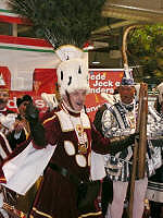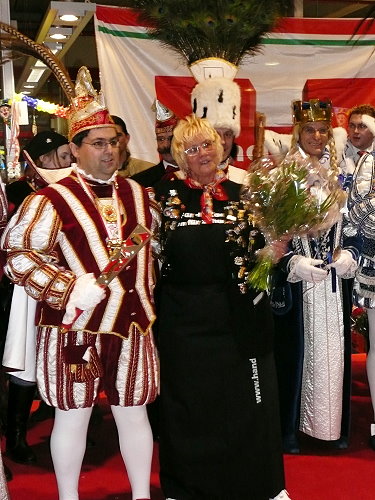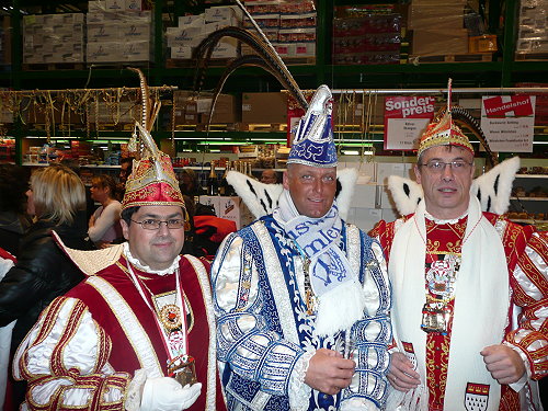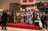 Gemeinsamer Auftritt im Handelshof: Dreigestirn Glessen und Dreigestirn Dansweiler. Nicht zu vergessen: die GLESSENER MONGOLEN