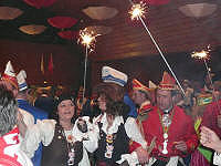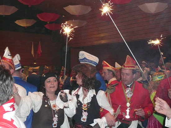 roten Teppich und Wunderkerzen im Saal vom Glessener Gefolge empfangen. Heimlich