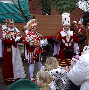 Gegen 15:00 Uhr traf dann auch das Glessener Dreigestirn auf dem Dorfplatz ein