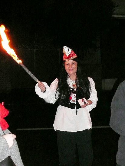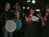 den Jecken aus den beiden Glessener Gaststätten hoch zum Dorfplatz, wo der