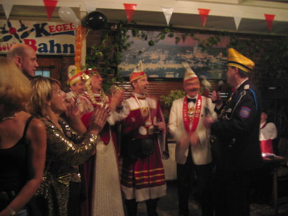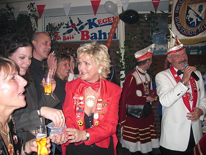 Tolle Stimmung Prinzenempfang, zu dem das Glessener Dreigestirn Prinz Christian I., Bauer Ove und Jungfrau Dietlinde einlud (Quelle: M. Broetje 2007)