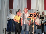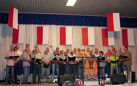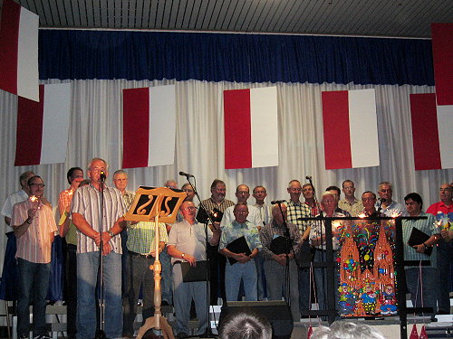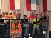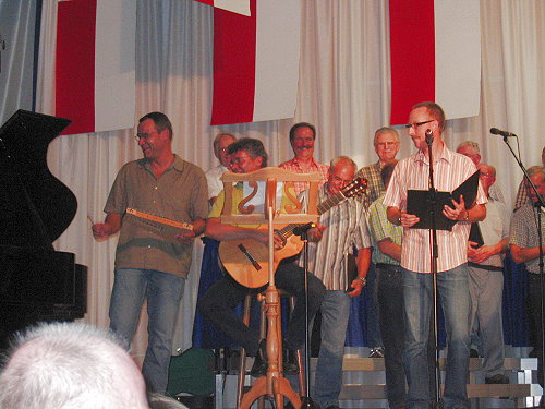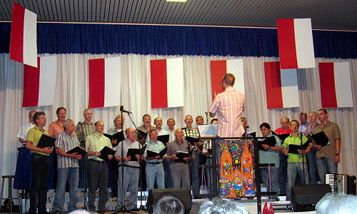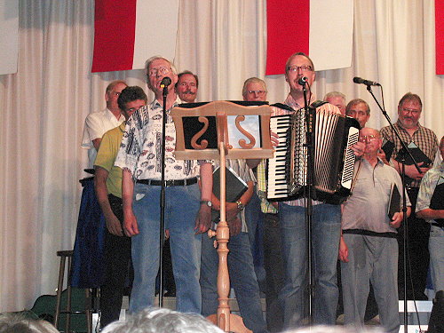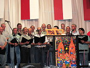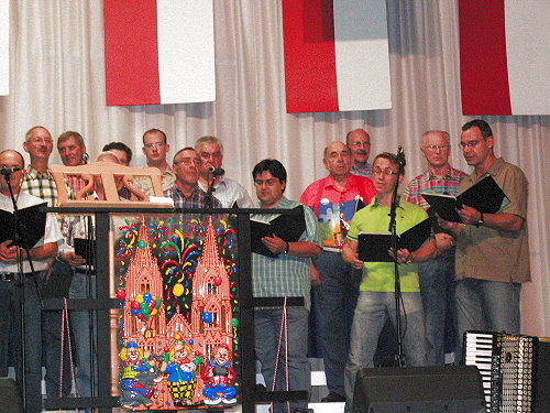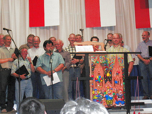Am Samstag den 02.09.2006 gab der MGV Glessen sein Konzert in der Mehrzweckhalle. Rund 300 Besucher lauschten den kölsche Tön. Mit einem 2 Stunden-Programm, Liedern von den Höhnern, Brings, Ostermann, Millowitsch und Bläck Fööss konnte der MGV Glessen die Besucher begeistern. Neben dem Chorgesang haben es sich einzelne Sänger des MGV Glessen (Dieter Kelterbaum, Herbert Lotter und Rolf Theus) nicht nehmen lassen, auch Einzelstücke vorzutragen. Eine ganz andere Darbietung präsentierten der 1. Vorsitzende des MGV Bernd Naumann, der Kassierer Rene Dickkopf und Michael Broetje: einen Sketch - die Dreigestirnsschulung (im Original aus der Stunksitzung). Das Konzert bekam nicht zu letzt wegen der hervorragenden Moderation des Chorleiters Hans-Josef Pütz eine besondere Würze: kurzweilig wurden nette Anekdötcher und jecke Verzällcher zwischen die Programmnummern gestreut. Premiere hatte auch Hansmartin Kleine-Horst, der den MGV Glessen an diesem Abend am Piano begleitete: er spielte - sehr zur Freude des Publikums- 2 Solostücke und konnte sein ganzes Können zeigen. Im übrigen: wer das Konzert des MGV Glessen am 02.09.2006 nicht sehen konnte, kann dies noch am 23.09.2006 in Kerpen-Sindorf tun. Dort wird das Konzert nochmals aufgeführt. Karten gibt es unter: Bnaumann@OswaldNaumann.de Bilder und Eindrücke des Konzerts können Sie hier sehen: