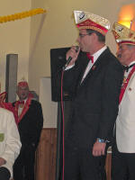 Prinzenführer Achim Franzen stellt sein Dreigestirn vor (für ihn als Prinzenführer war es die Feuertaufe und er machte seine Sache sehr gut)