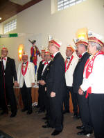 Kurze Vorstellung bei der Veranstaltung "Dreigestirn und Feuerwehr fiere" in Niederaußem (im Hintergrund: unsere Freunde des Dreigestirns Oberaußem)