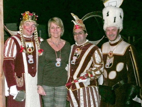 45. Geburtstag Als Geschenk immer gut: das Glessener Dreigestirn auf der Fete bei Gerlind, die 44. geworden ist ! Auf kleinstem Raum gaben hier Prinz Michael I., Bauer Bernd und Jungfrau Renée ihr Stelldichein und trugen ihr Leed vor. Anschließend wurde noch mit dem Geburtstagskind und den Gästen gefeiert.