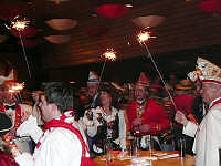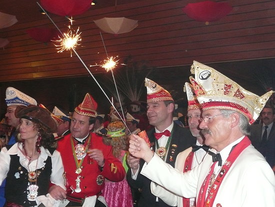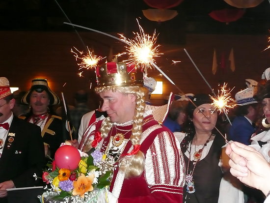 roten Teppich und Wunderkerzen im Saal vom Glessener Gefolge empfangen. Heimlich