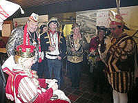 Gespräche - Bauer Bernd und Jungfrau Renée sowie Prinzenführer Achim mit Präsident Gerd Lieven