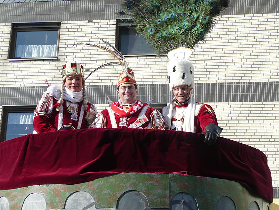 Gingen natürlich als Dreigestirn die Reihen des Zuges ab: hier Prinz Michael I. mit Brigitte, Werner, Jenny, Natalie und Peter