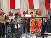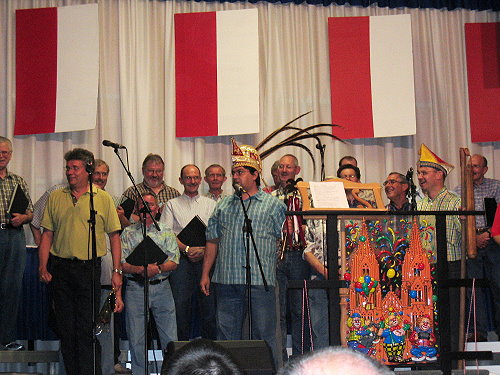 Am Samstag den 02.09.2006 gab der MGV Glessen sein Konzert in der Mehrzweckhalle. Rund 300 Besucher lauschten den kölsche Tön. Mit einem 2 Stunden-Programm, Liedern von den Höhnern, Brings, Ostermann, Millowitsch und Bläck Fööss konnte der MGV Glessen die Besucher begeistern. Neben dem Chorgesang haben es sich einzelne Sänger des MGV Glessen (Dieter Kelterbaum, Herbert Lotter und Rolf Theus) nicht nehmen lassen, auch Einzelstücke vorzutragen. Eine ganz andere Darbietung präsentierten der 1. Vorsitzende des MGV Bernd Naumann, der Kassierer Rene Dickkopf und Michael Broetje: einen Sketch - die Dreigestirnsschulung (im Original aus der Stunksitzung). Das Konzert bekam nicht zu letzt wegen der hervorragenden Moderation des Chorleiters Hans-Josef Pütz eine besondere Würze: kurzweilig wurden nette Anekdötcher und jecke Verzällcher zwischen die Programmnummern gestreut. Premiere hatte auch Hansmartin Kleine-Horst, der den MGV Glessen an diesem Abend am Piano begleitete: er spielte - sehr zur Freude des Publikums- 2 Solostücke und konnte sein ganzes Können zeigen. Im übrigen: wer das Konzert des MGV Glessen am 02.09.2006 nicht sehen konnte, kann dies noch am 23.09.2006 in Kerpen-Sindorf tun. Dort wird das Konzert nochmals aufgeführt. Karten gibt es unter: Bnaumann@OswaldNaumann.de Bilder und Eindrücke des Konzerts können Sie hier sehen:
